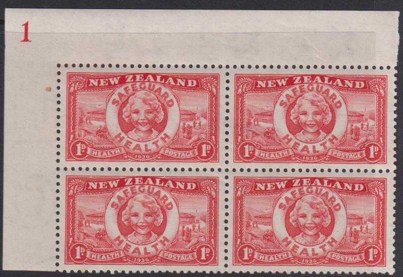 1936 Lifebuoy top L/H corner plate block of 4 - No. 1. CP cat $75. MUH.