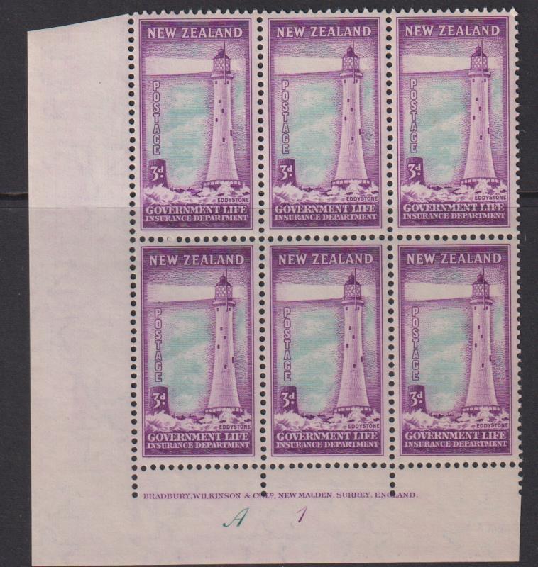 1947 3d Eddystone block of 6, plate (A1). CP cat $40. MUH.