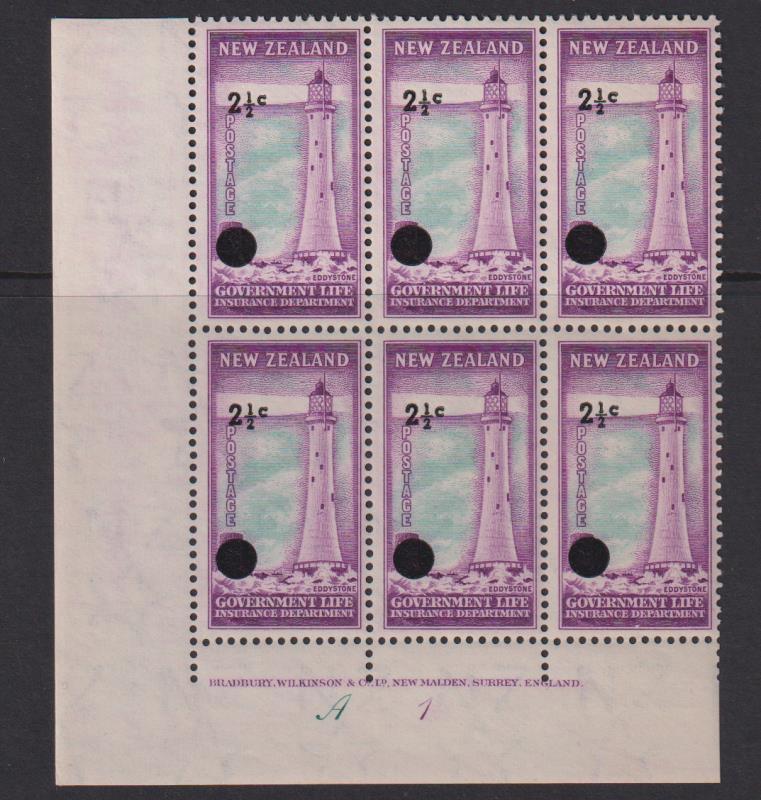 1967 2½c on 3d Eddystone plate block of 6, upright wmk. CP cat $40. MUH.