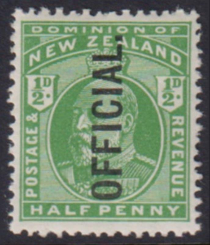 1929 ½d GV, Cowan, p14, variety "No stop after OFFICIAL" (R5/24) right selvedge block of 4 MUH (mounted on selvedge only). CP KO13f(z). Cat $225.