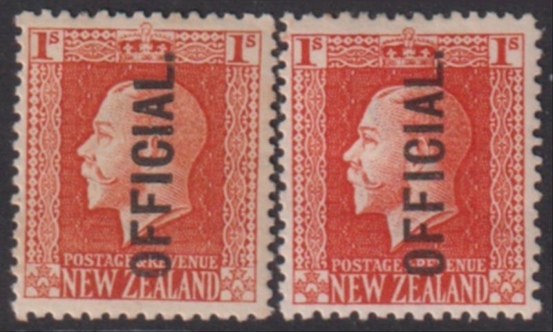 1915 1/- GV x 2 diff shades. Jury cat $80. Mint.