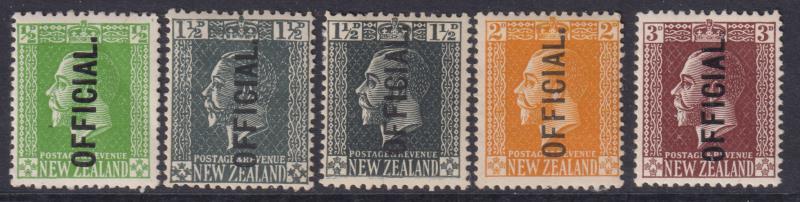 1915 GV surface sheet set of 4 (no 1½d brown) plus 1½d grey (local print). Jury cat $72.50. Mint.