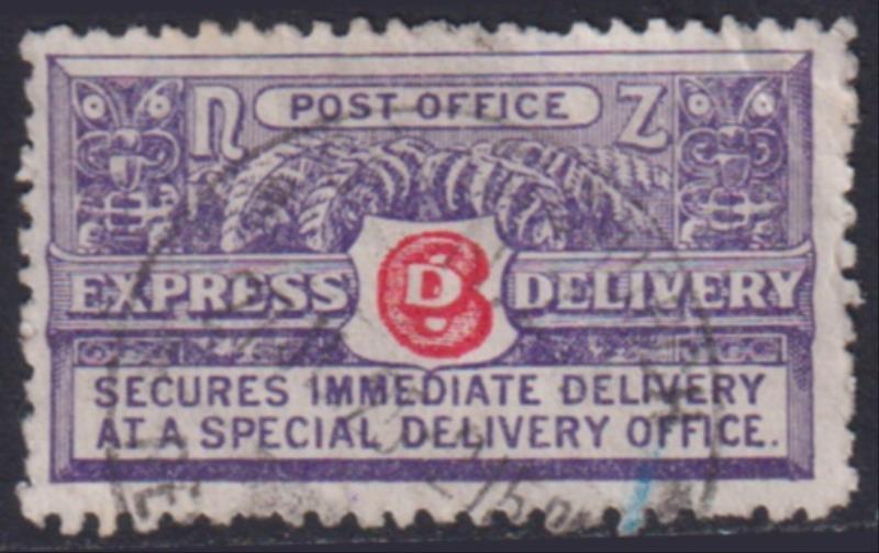 1937 6d Express Delivery, Fernleaves, WT paper, p14 x 14½. FU, with pair 1937 1d Coronation, on express cover, canc Wellington cds 31 OC 38, with "EXPRESS." label, to Blenheim. No receipt b/s, but m/s "Left Notice". A little roughly opened, otherwise go