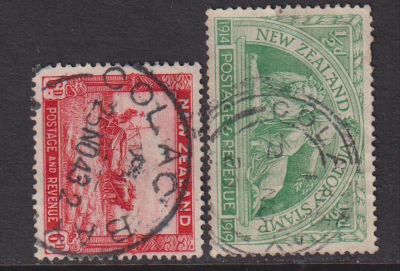 Colac Bay (IN 1882-1974) good near complete H-type cds (name complete) 2 NO 20 on ½d Victory & fine near complete 29mm J-type 25 NO 43 on 6d Harvesting (2).