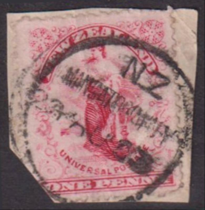 Clinton (DN 1873-1988) good 75% strike of "O21"in bars obliterator on QV 2d FSF c1880. Part of "O" unclear, "21" clear.