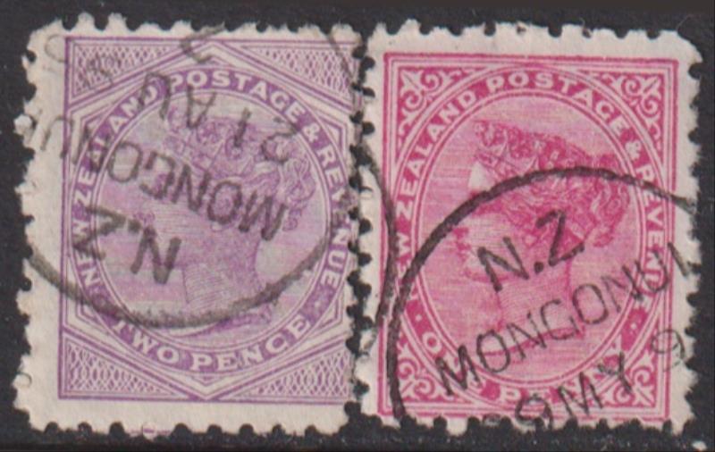 Mongonui (WR 1852-96, to Mangonui) 2 fine large part strikes of A-type cds 21 AU 95 on 2d SSF & 29 MY 9? on 1d SSF.