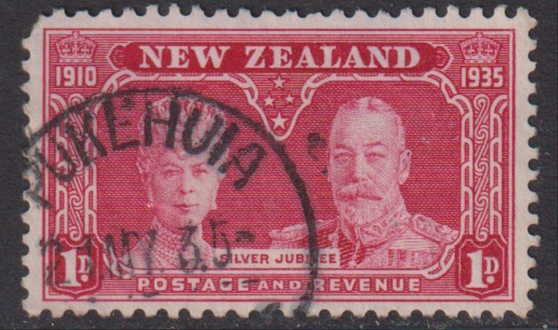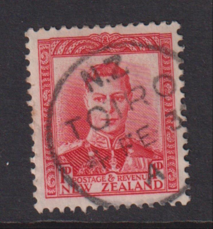 Pukehuia (WR 1912-53) fine large part J-type cds 21 MY 35 on GV 1d Jubilee. Name complete.
