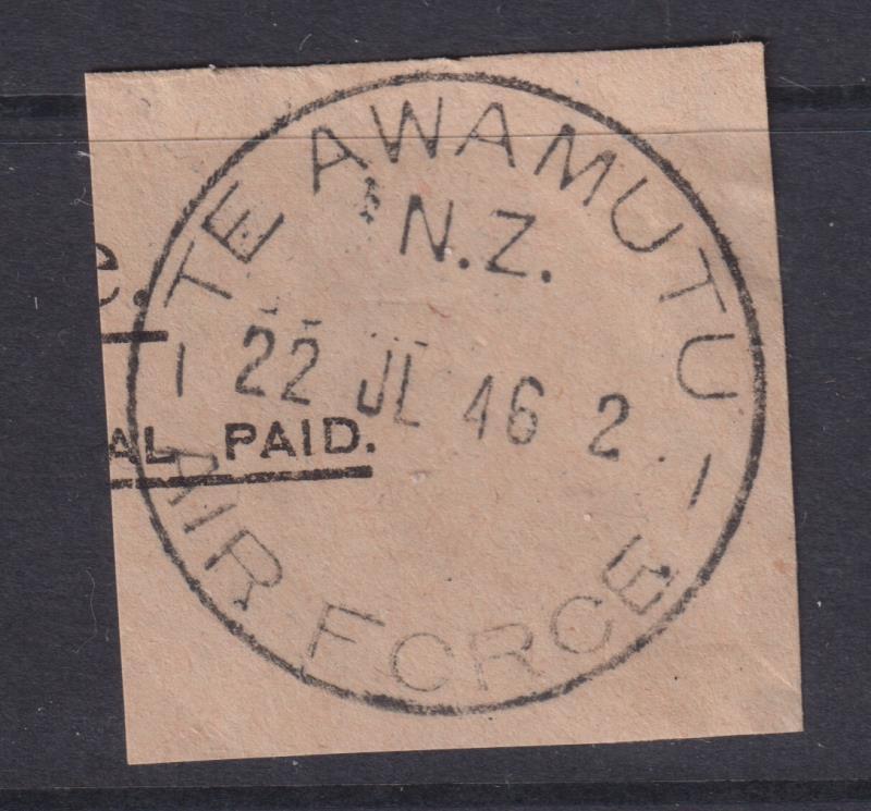 Te Awamutu Air Force (HN 1944-8) fine complete J-type cds 22 JL 46 on neat envelope cutout. Scarce.
