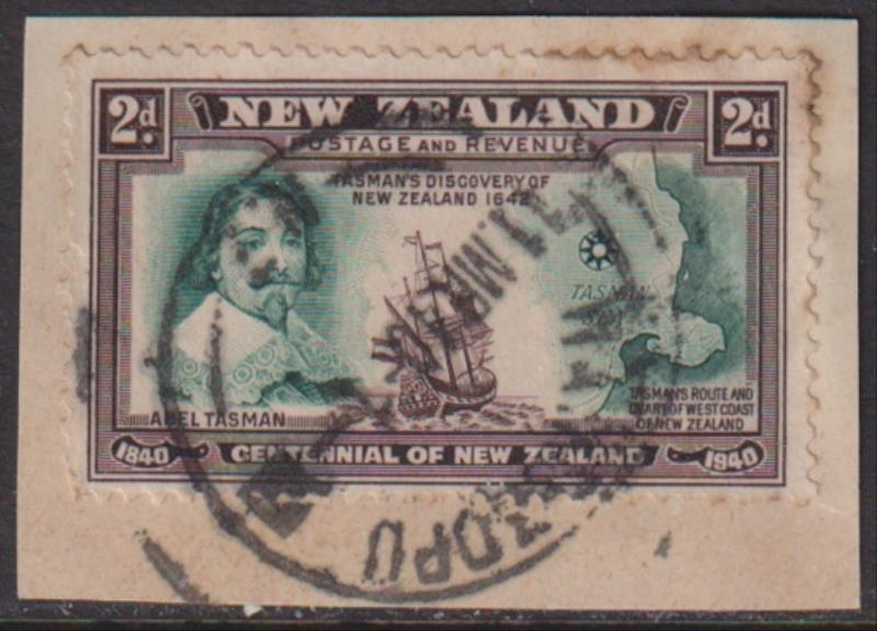 Waikokopu (NA 1922-43) good complete C-type cds 11 MR 40 on 2d Centennial on neat piece. Railway construction camp. Scarce.