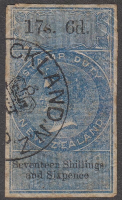 1867 17/6d QVLT, die I, imperf 4 even margins, 2 small pinholes - attractive, scarce stamp nonetheless. Kiwi R236. Cat $1250.