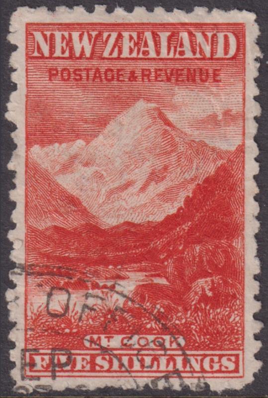 1903 5/- Mt Cook, p11 upright wmk, unpunched. Kiwi R584K.