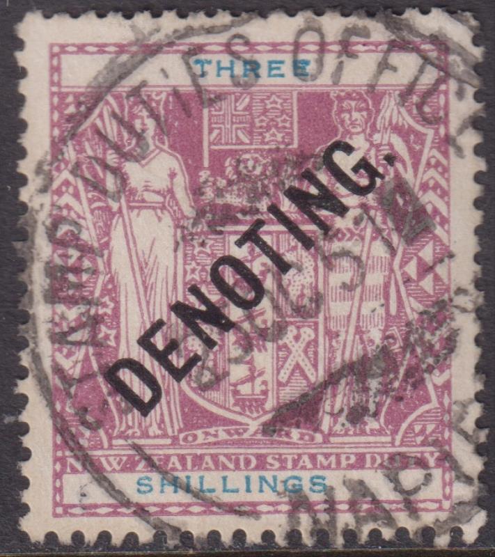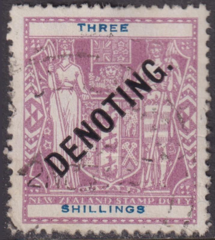 1951 3/- DENOTING reddish mauve, WT multiple inverted wmk, unpunched. Kiwi R54c. Cat $200.