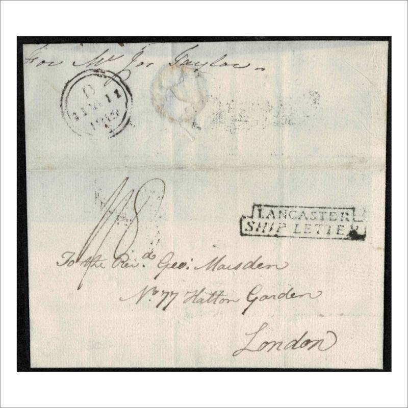 1818 (MY) Earliest Recorded Outer Wrapper from New Zealand in a Private Collection. The Wrapper was carried on the brig ‘Active’ from the Bay of Islands to Sydney, arriving 23 May 1818. It then went on the Sailing Ship ‘Batavia’ departing Sydney 3 June 1818 for Lancaster via Bombay and the Cape of G
