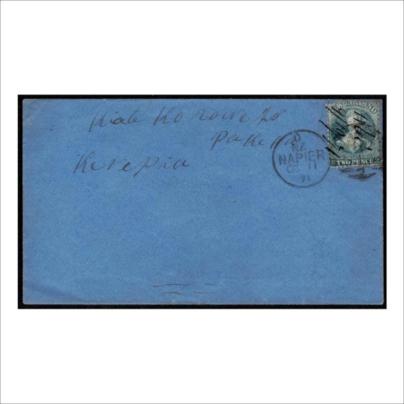 1871 (OC11) Cover addressed in Maori with Perforated 2d Blue tied by Napier duplex cancel and has a manuscript cancel ‘Wai 9/11/71’ Fine & Interesting (1)