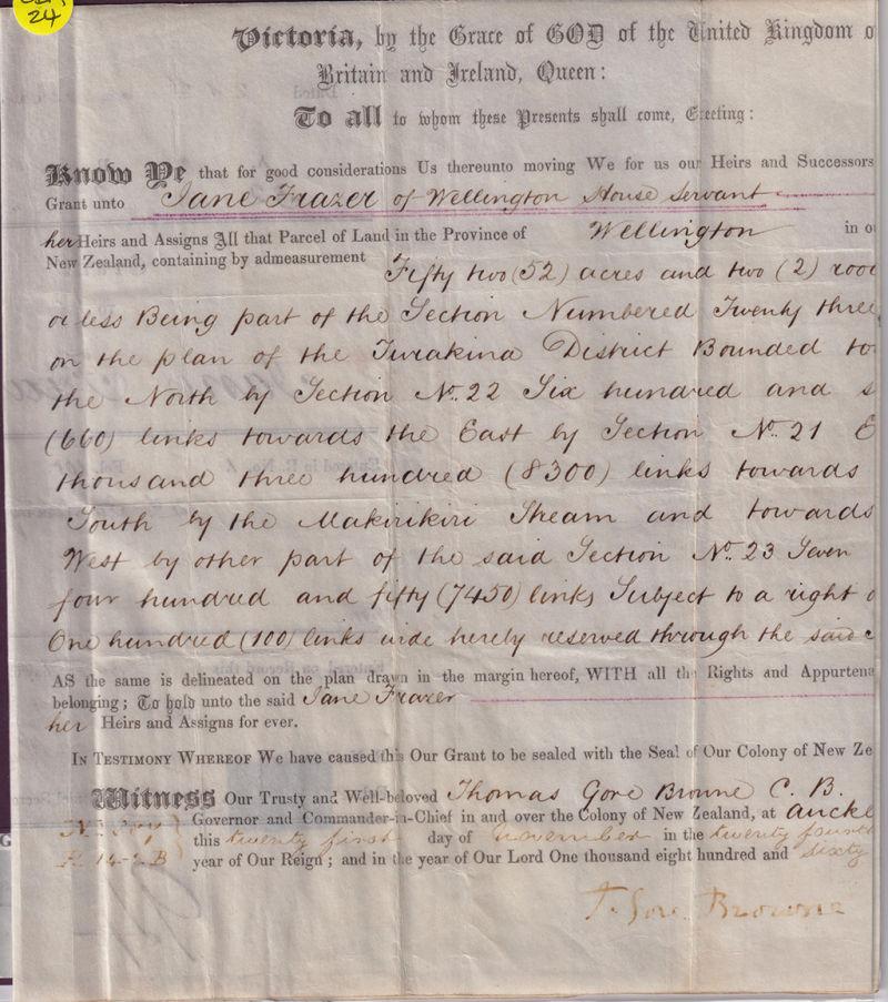 1861 Printed Document for the purchase of land in the Turakina District. Signed and approved by the Governor, Thomas Gore Browne. Fine & Interesting Document (1)