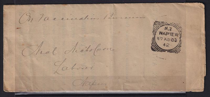 1903 (17AU) Printed Wrapper endorsed ‘On Vaccination Business’ from the Vaccination Inspector’s Office to a local address advising that he will be prosecuted if their child is not vaccinated within the next 12 months. Light ageing. (1)