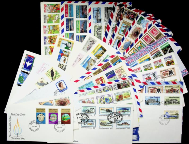 New Zealand collection of 28 variously cancelled airmail covers/ commemorative FDC to USA/ Canada