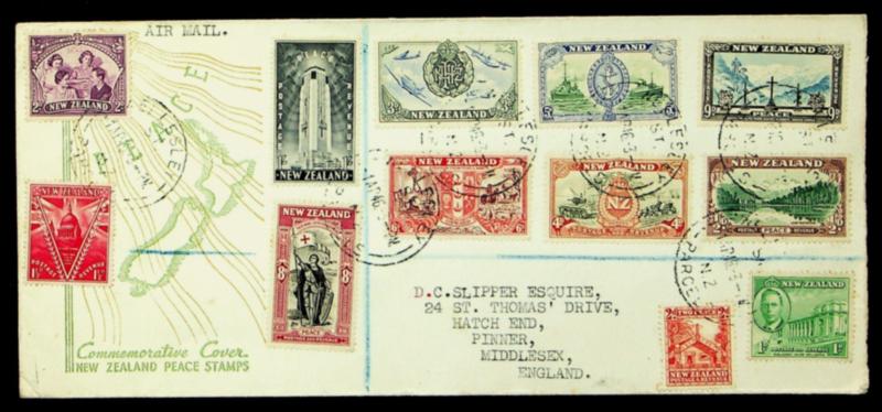 New Zealand 1946 Peace Issue 12v on Regd airmail cover from Wellesley to England