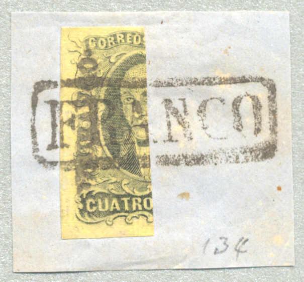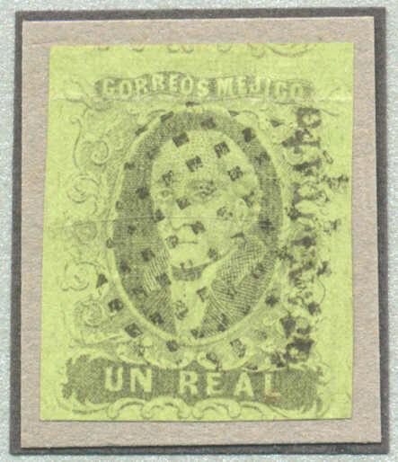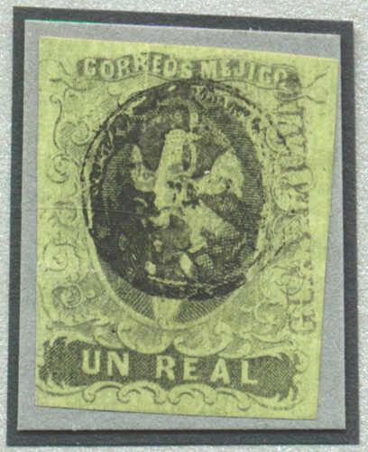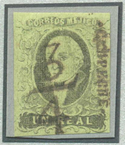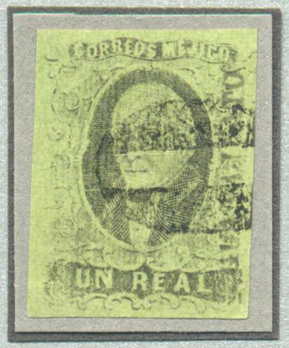 1861, 1r, grey-black on green, imperf, GUANAJUATO district, cancelled with mute GUANAJUATO (Schatzke 478), scarce cancel, ex Provera, very fresh and desirable, XF! Schätzpreis 450€.