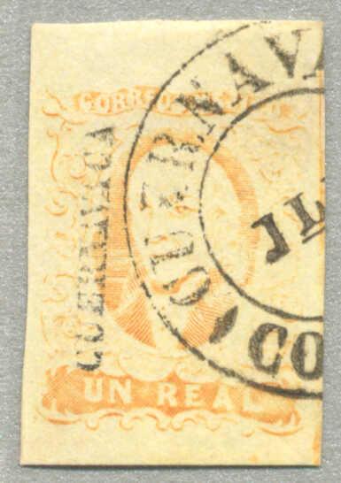 1856, first Hidalgo issue, 1 r, yellow, with district opt CUERNAVACA, with a part strike of CUERNAVACA, (Schatzkes 218), very fresh and desirable, XF! Schätzpreis 150€.