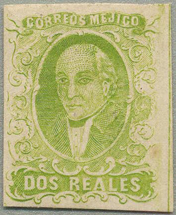 1861, 1r, grey-black on green, imperf, GUANAJUATO district, cancelled with O from GUANAJUATO (Schatzke 481), ex Provera, exceptionally fresh and desirable, XF! Schätzpreis 120€.