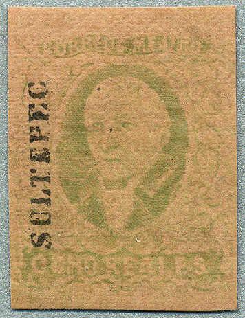1861, 8 R, green/brown, SULTEPEC district name - not listed in Follansbee on 1861 issue, LPOG, very fresh and desirable, XF! Schätzpreis 600€.