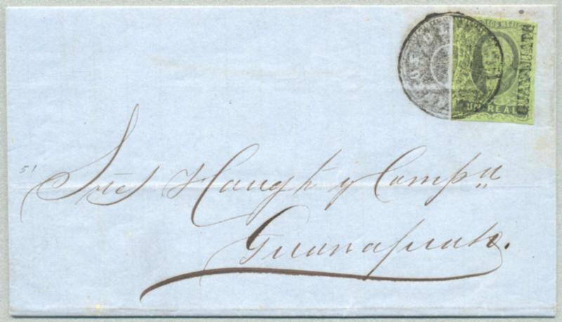 1862, 1r, grey-black/green, imperf, GUANAJUATO district, on letter from LEON to GUANAJUATO, cancelled with black O (Schatzke 481) and aside cancel LEON DE LOS ALAMAS (Schatzkes 500), ex Provera, exceptionally fresh and desirable entire, XF! Schätzpreis 400€.