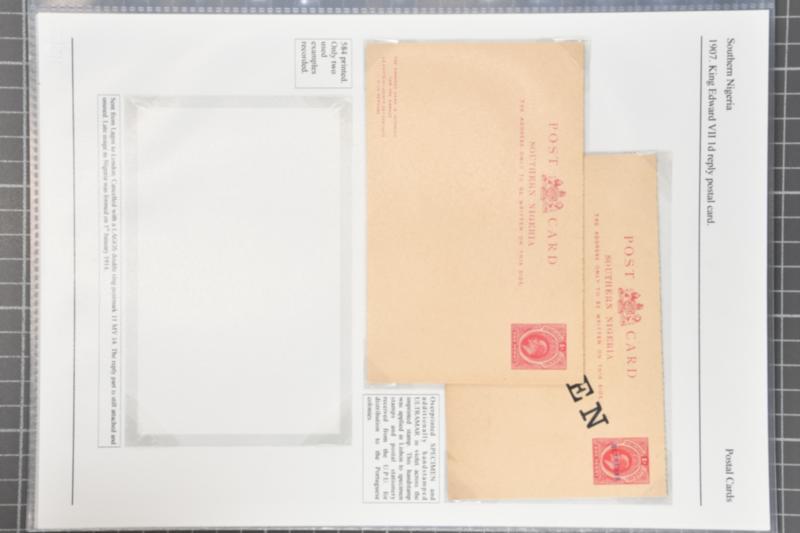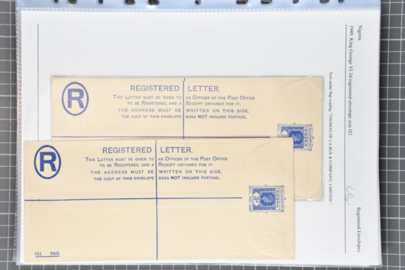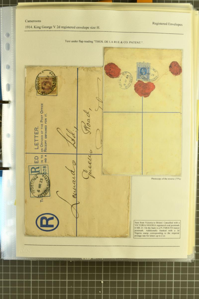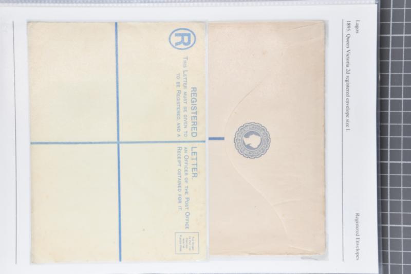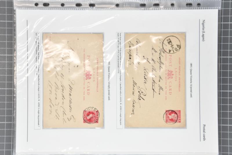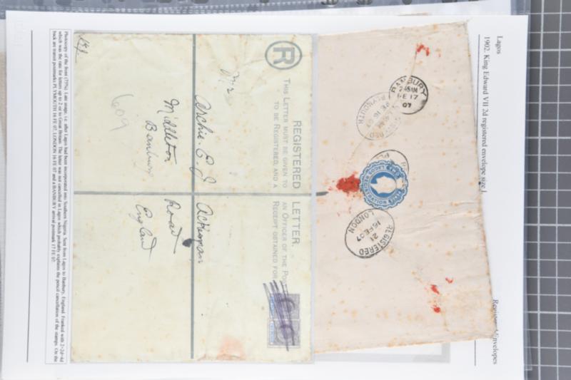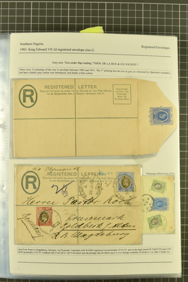 1892/1914: Extensive collection of postal stationery contained within a large binder and an album. Predominately registered stationery envelopes from Lagos, Oil Rivers, Niger Coast Protectorate and Southern Nigeria. Comprises over one-hundred examples, unused and used, mainly mounted on exhibition p