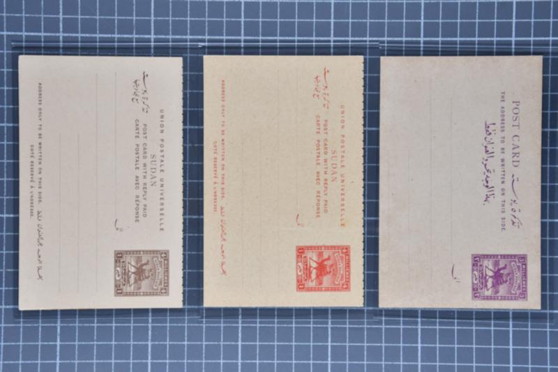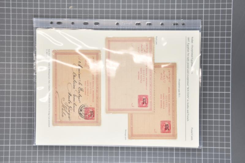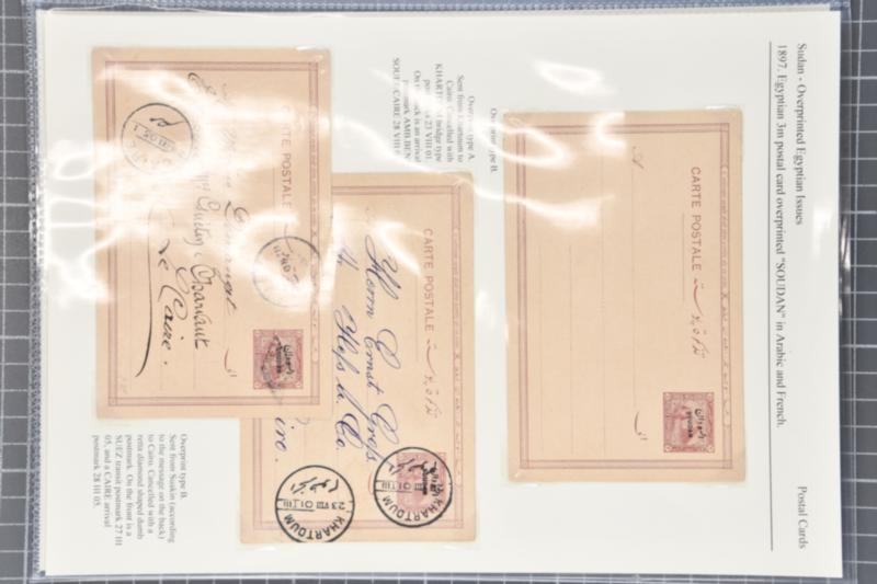 Egypt Stationery: 1897 Assembly of sixteen postal cards overprinted with "SOUDAN" Arabic and French in black. Comprising eight 5 m. carmine postal cards of which two are used (H&G 2) and eight examples of the 5 m.+5 m. carmine reply card which includes 4 used and 4 unused (H&G 3). Some flaws