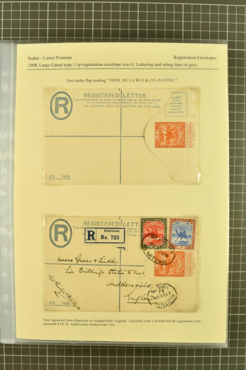 1908-1960: Collection of predominately registered postal stationery envelopes presented as a study of their type and usage. Comprising thirty-two album pages with 80 examples neaty mounted and described. Good range of unused, used and the odd Specimen, with several uprated items and to good destinat