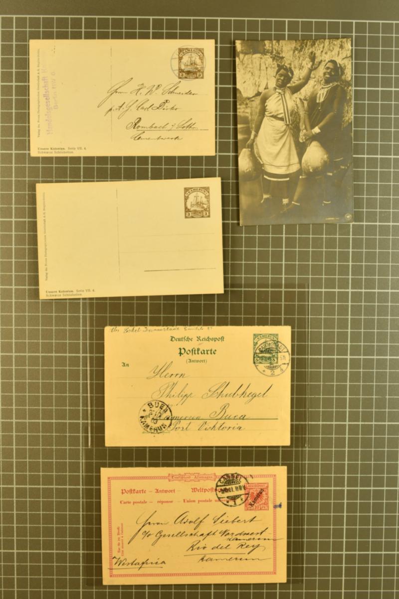 Kamerun – German Colonial Postal Stationery & Forerunners 1890-1908: A scarce and diverse assembly of eight examples, beginning with the 1890 10 pf. forerunner card to Dornumersiel showing the rare “Kamerun / Biafraküste” datestamp (used only Dec. 1889–May 1890); German 1897 Crown & Eagle st