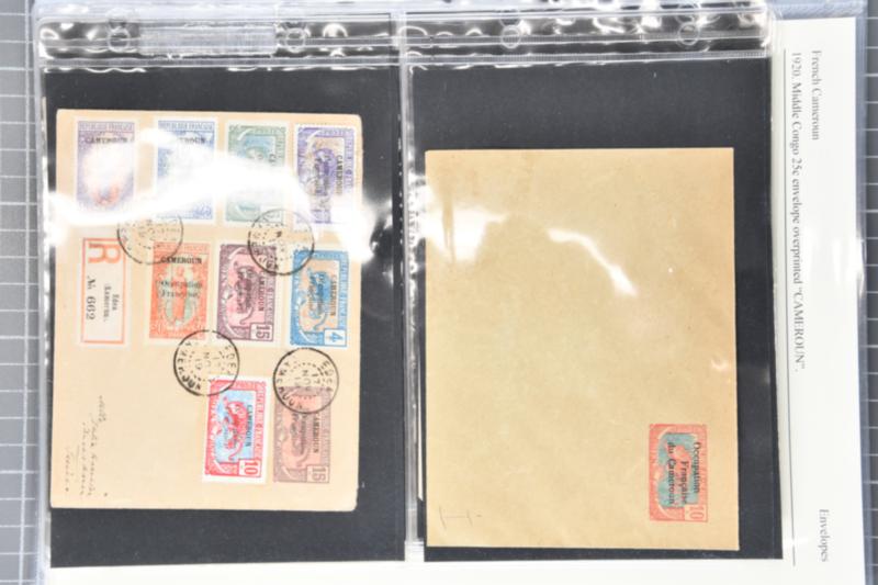 1915/28ca: Group predominantly comprising stationery envelopes with the Occupation overprint or the overprint 'CAMEROUN' on 'MOYEN CONGO', both used and unused. Included is a registered envelope uprated with eight Occupation overprint stamps, addressed to Switzerland in 1919 with an arrival postmark