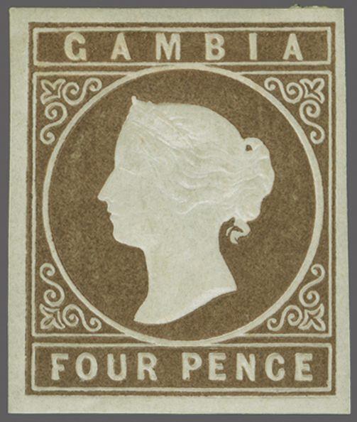 1869/71: 4 d. pale brown, no wmk., imperforate, a fine unused example of good colour, large even margins all round, large part og. Scarce so fine Gi = £ 500
