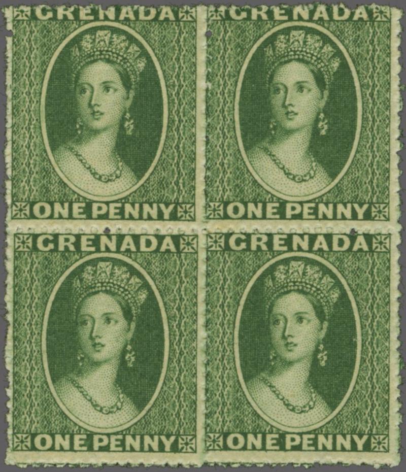 1862 (May): 1 d. green, no wmk., rough perf. 14-16, an unused block of four of lovely fresh colour, superb large part og., lower pair unmounted og. Ex the 'Mayfair Find' at Harmers, London, November 1925. Cert. A. Diena (1963) Gi = £ 200+