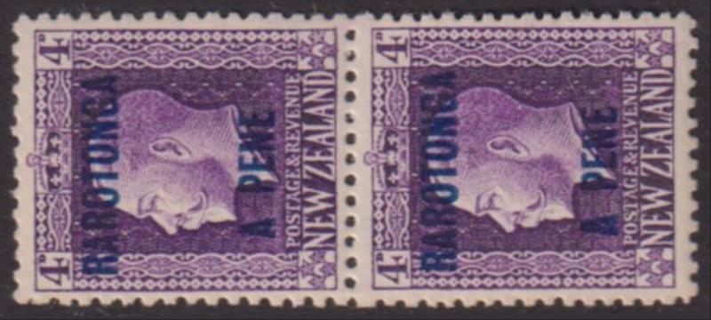Cook Isl 1919 4d GV 2-perf pair. SG 50d. Cat £20 as mint. MUH.