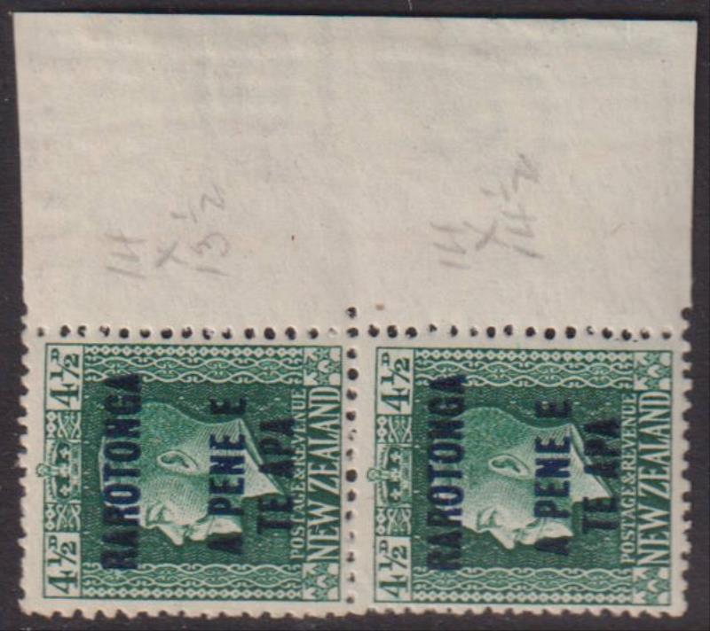 Cook Isl 1919 4½d GV 2-perf pair. SG 51b. Cat £20. Mint.