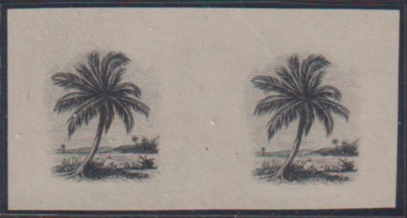 Cook Isl 1920 (3d) Palm Trees imperf centre plate proof horiz pair in black (design also used for Aitutaki, Penrhyn & Niue).