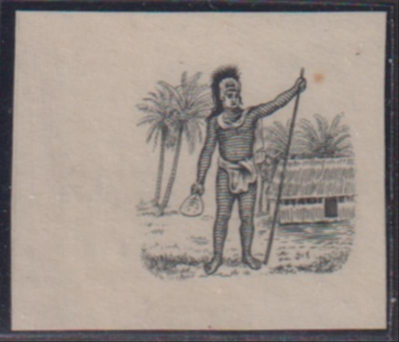Cook Isl c1927 (2½d) Chief imperf central plate proof in black, with RH selvedge, no wmk paper (design also used for Aitutaki, Penrhyn & Niue).