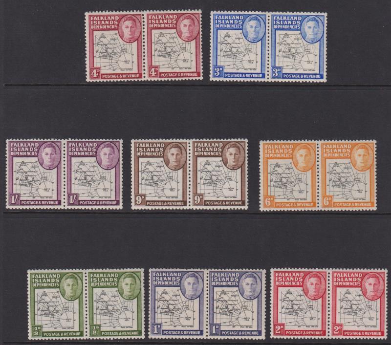 FID 1946 (thick) Map set horiz pair with variety "gap in 80th parallel" on 1st stamp. SG 91-98a. Cat £50+. MUH.
