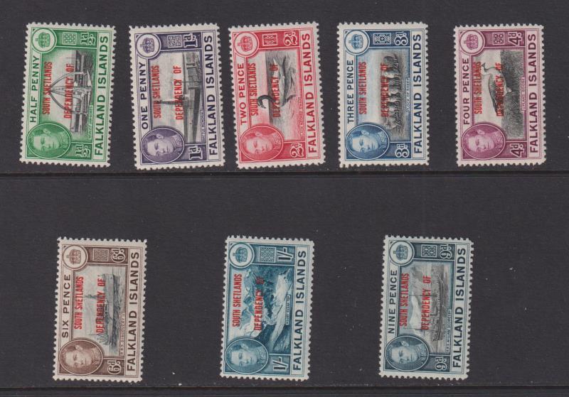 FID-South Shetlands 1944 ½d-1/- set of 8 ovpts on GVI Pictorials. SG D1-D8. Cat £24. MUH.