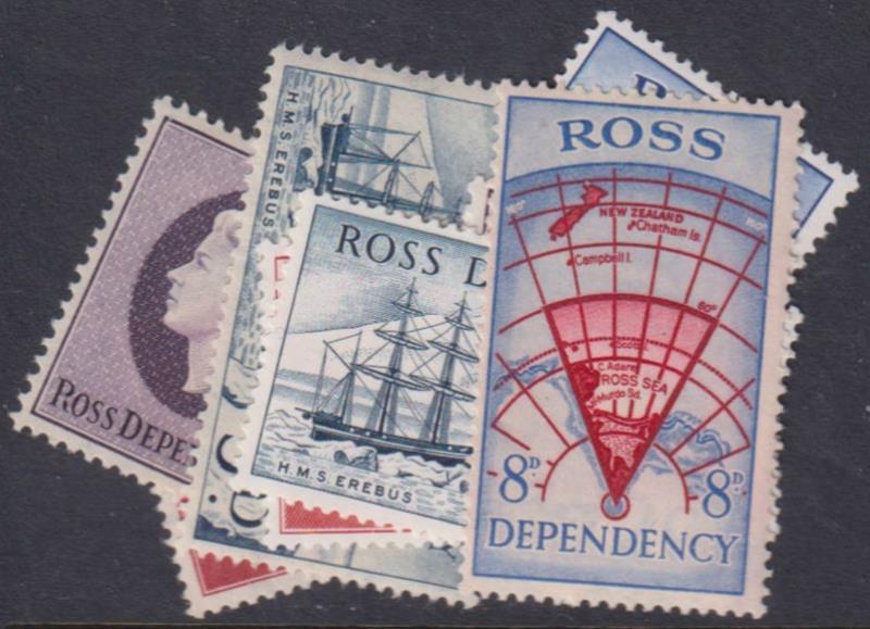Ross Dep 1957-67 decimal & pre-decimal sets of 4. Jury cat $125. MUH.