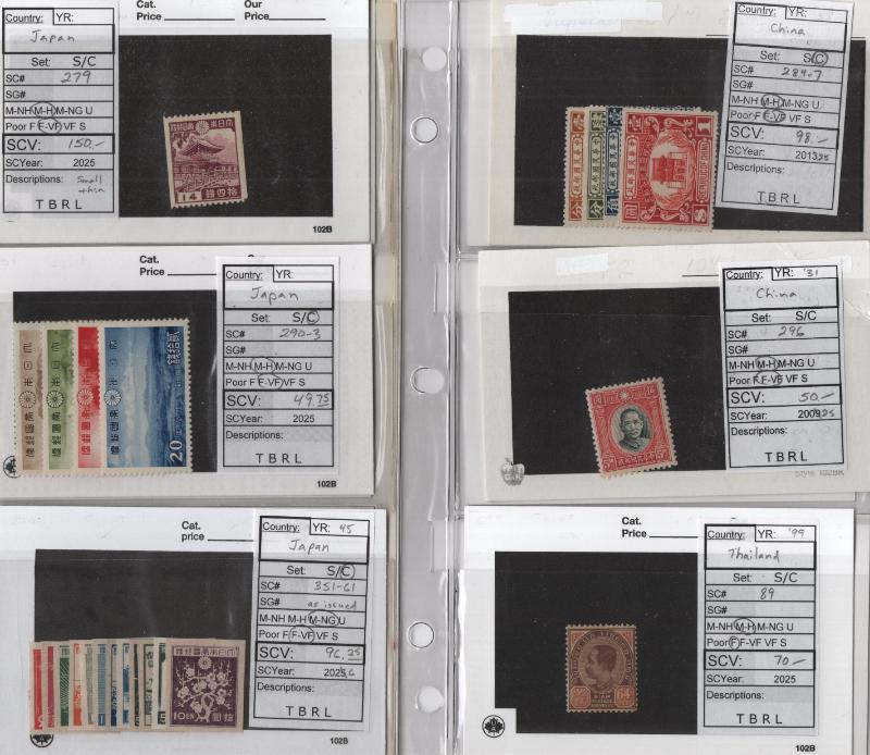 Unused Selection (19) diff mainly better items Far Eastern pre-1950 on cards w/ China #284-87, 296, Japan 53, 201, 229, 252, 279, 290-93, 351-62, C3, C5, C7, Korea 7-8, 20, 34 & Thailand 89, cond varies but gen F-VF H
