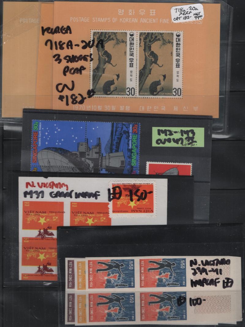 Accum (100s) */O mainly 20th Cent on stkpgs, abt (20+) counterbook pgs & abt (20+) 102 cards incl Unused: PRC #1104-07, 1121A, 1261-64, 1290-95, 1303-06, 1974-80, Also Korea, Singapore & N Vietnam errors; & Used: China 7, 8, 10, 11, 16, 28 & more; some light dup; owner's CV $5,400 (NV); few