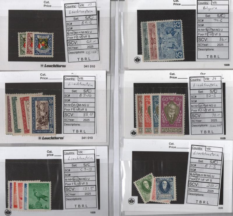 Nice Group */O sets & singles w/ very little dup incl Liech unused #3, 293-96, 303-06, 320-23, 329-31, 353-55 (5), 472-73, C17-23 (2) & many others, Switz unused #133a, 152a, 230a & used #39 (2), 161a, B6, Lux unused #126-30, B11-9 & used 1, 7, 75-91, 158//178, Saar unused #155-74, DDR unuse