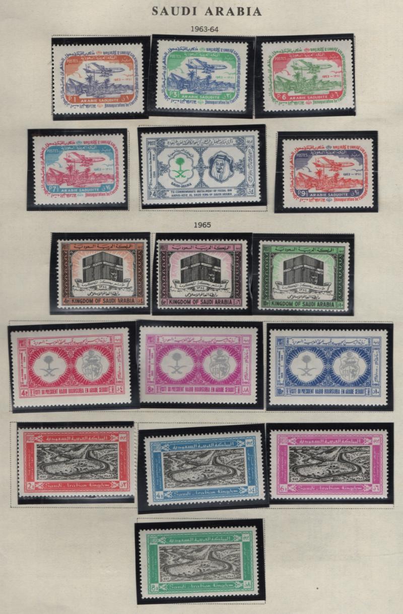 Saudi Arabia 1945-85 & Yemen 1930-64 (100s) */O on Scott pgs, Saudi Arabia incl many commem sets & better airmail singles, Yemen incl some Scott footnoted & unlisted items; some Saudi Arabia in wrong spaces; H/NH, could be few flts but gen F-VF