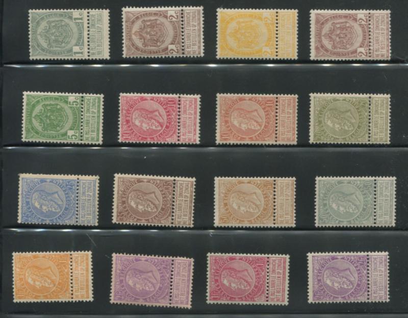 Belgium 1893 - 1900 #60 - #75, a MNH /MH complete set of 16 value to the 2fr, Scott value $610.40+, appears f-vf