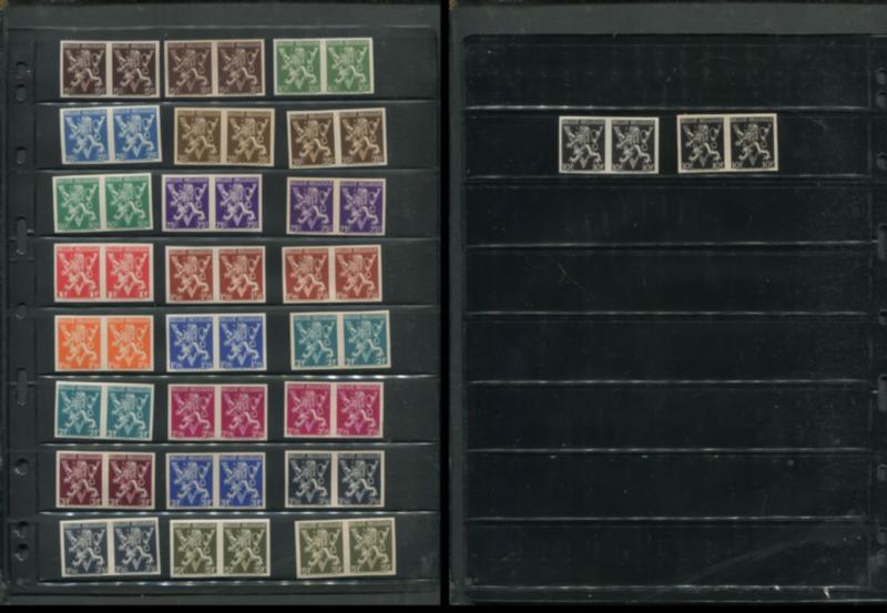 Belguim 1944 #338 var / #353var, a MNH a Complete set of 16 value plus extras IMPERFORATE Pairs, unlisted in Scotts Appears F-vf