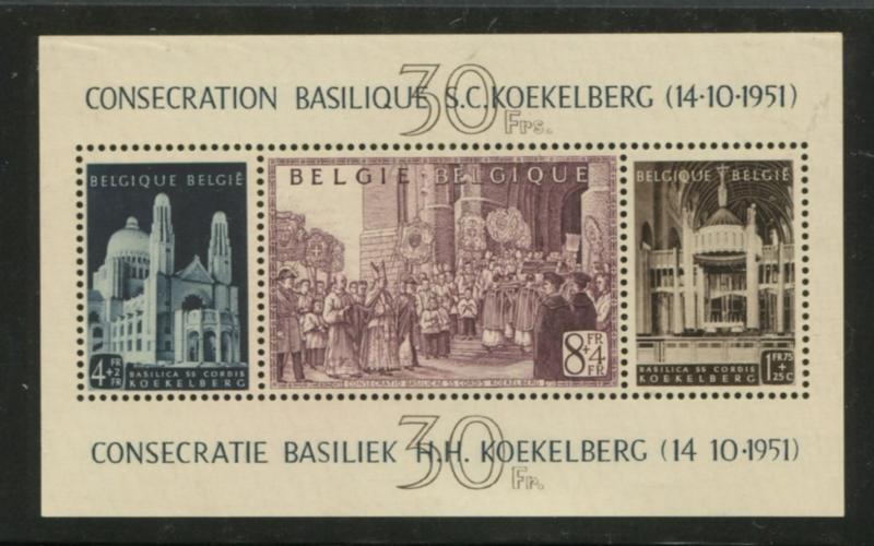 Belgium - Semi Postal 1952 #B513a, a MNH Souvenir sheet of B511-B513 Scott value $425, some ink transfer on reverse of centre stamp, otherwise appears f-vf