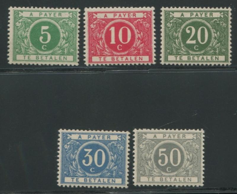 Belgium - Postage Dues 1916 #J12 - #J16, a MNH complete set of five, with 5c, 10c, 20c, 30c and 50c, Scott value as MNH $1500, appears f-vf