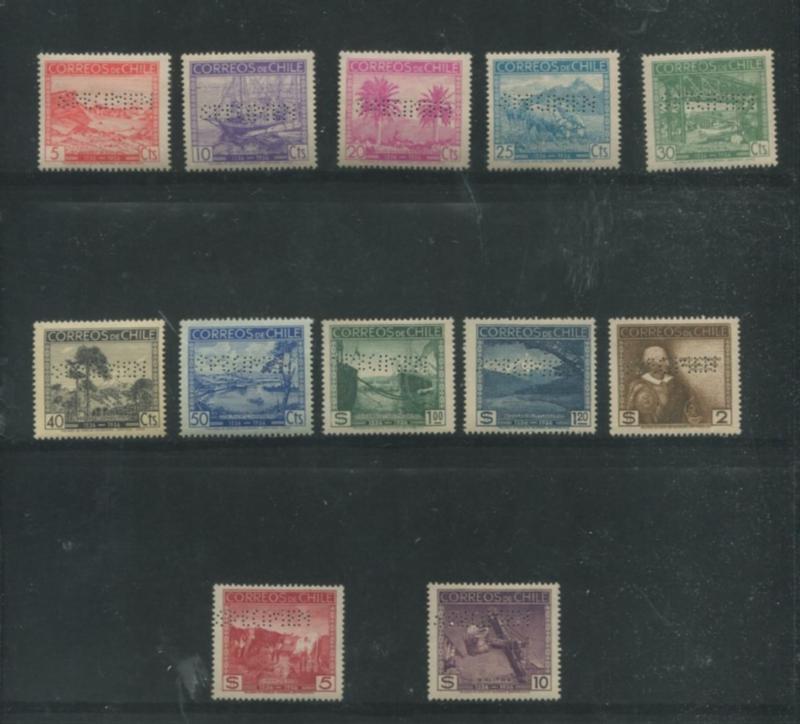 Chile 1936 #186 -#197, a MNH set of 12 400th anniversay of the discovery of Chile" perforated "SPECIMEN". These were sent all postmasters in the UPU in total 435 sets were produced appears f-vf